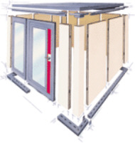 The modular rooms are made up of a series of tightly interlocking panels and gasketed doors, as seen in Wenger's illustration above, and are guaranteed by the manufacturer to provide various levels of isolation from nearby rooms. The manufacturer states that 67 configurations are available. Pricing is available on their website.