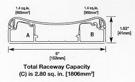 Unique features of the raceway are the concave face and dedicated interior wiring channels that hold power and